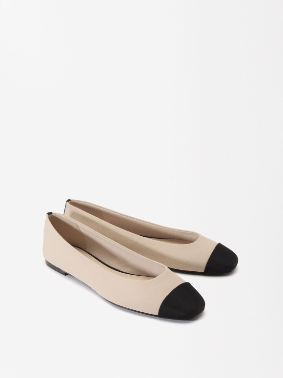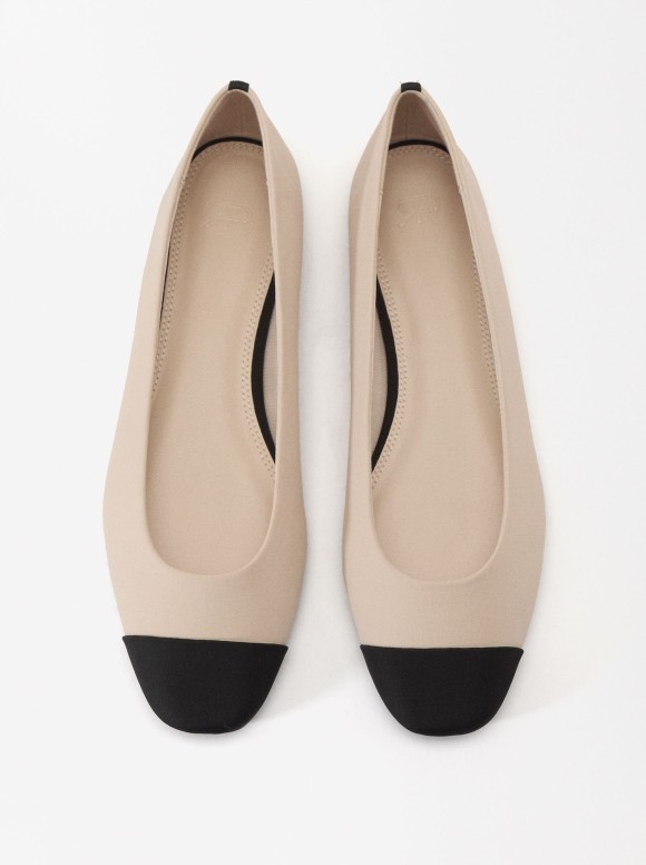 حذاء مسطح من القماش أحادي اللون. بنعل داخلي مبطن لمزيد من الراحة.